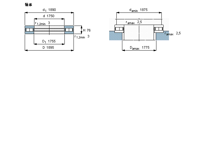 | 动态 | 静态 | 参照速度 | 限制速度 | 轴承 | 圆柱滚子和保持架止推组件 | |||||||