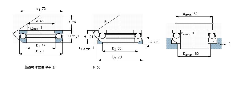 | 推力球轴承, 单向,带球面轴承座垫圈 | ||||||||||||